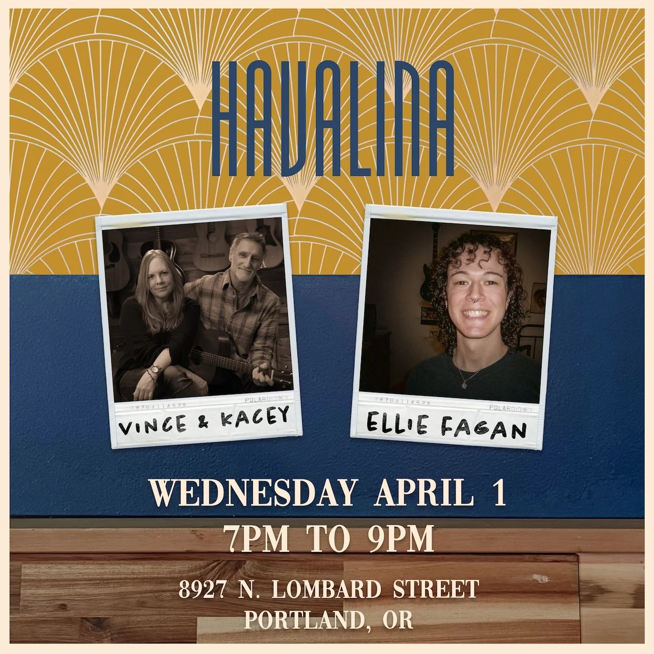 Wednesday April 1: Vince & Kacey returns for the First Wednesday monthly hang at Havalina. Special Guest Ellie Fagan opens at 7:00, Vince & Kacey play at 8:00.
